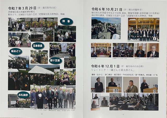 そこで早速、鹿児島出身の永井宏治氏に当内容を伝えたところ塚田喜太郎顕彰碑建立の記念に作成された記念誌を出席者全員に配布しましょうと提案いただき30冊が郵送。中を拝読しましたが、錚々たるメンバーが寄稿された分厚い冊子の内容は、驚くほど重厚で各自の歴史的背景が色濃く反映された寄稿文ばかりでした。