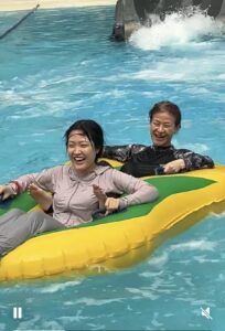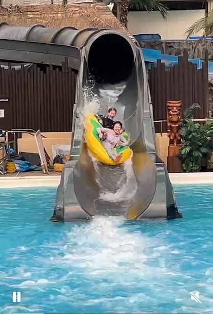 そして何十年振りの水着で挑むは温水プール、たじろいでいましたがスライダーも何種類も滑りましたがな 💦