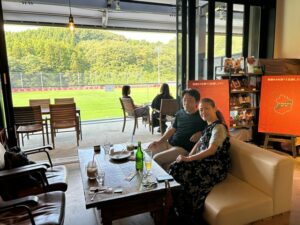 ハワイアンズは一泊のみ、近くに「いわきFCパーク」なるサッカーの練習を観ながらカフェができる施設へ行くことに。熊出ないかメチャ心配でフロントに「熊大丈夫ですか」と聞いて笑われましたが・・・