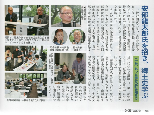 そのお声かけくださったお一人の中に、この日の講演会の撮影で来られていた「ふくおか経済」の記者さんがいらしたのですが、以前の語り芝居にいたく感心して頂いていたようで「記事に声色俳優®の岩城さんが司会だったと掲載します」と仰ってくださり、それは嬉しい事に実現しました!!