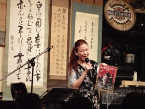 確かに語り芝居の時には和洋どちらも華やかな衣装に髪も結い上げてオーラ全開ですからね、司会の時のような物腰柔らかくニコニコではないかもですね。
